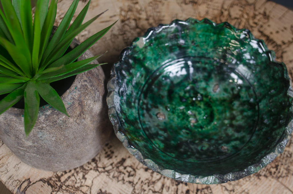 These beautiful Moroccan Tamegroute glazed terracotta bowls are all truly unique and one off. Add some colour to your kitchen or lounge. Perfect for serving tapas, displaying trinkets or simply adding to your coffee table as decor. Choose your favourite from the dropdown menu (Main picture will change to your selection)
